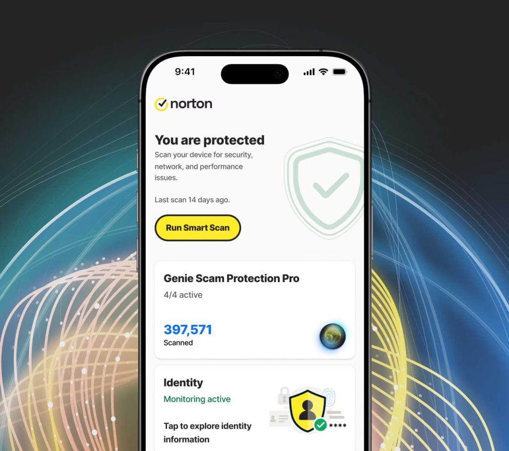 Genie’s AI engine scans SMS messages for sophisticated scams so you can check your texts with peace of mind, device security blocks hackers, and Norton VPN helps keep your online activity private.